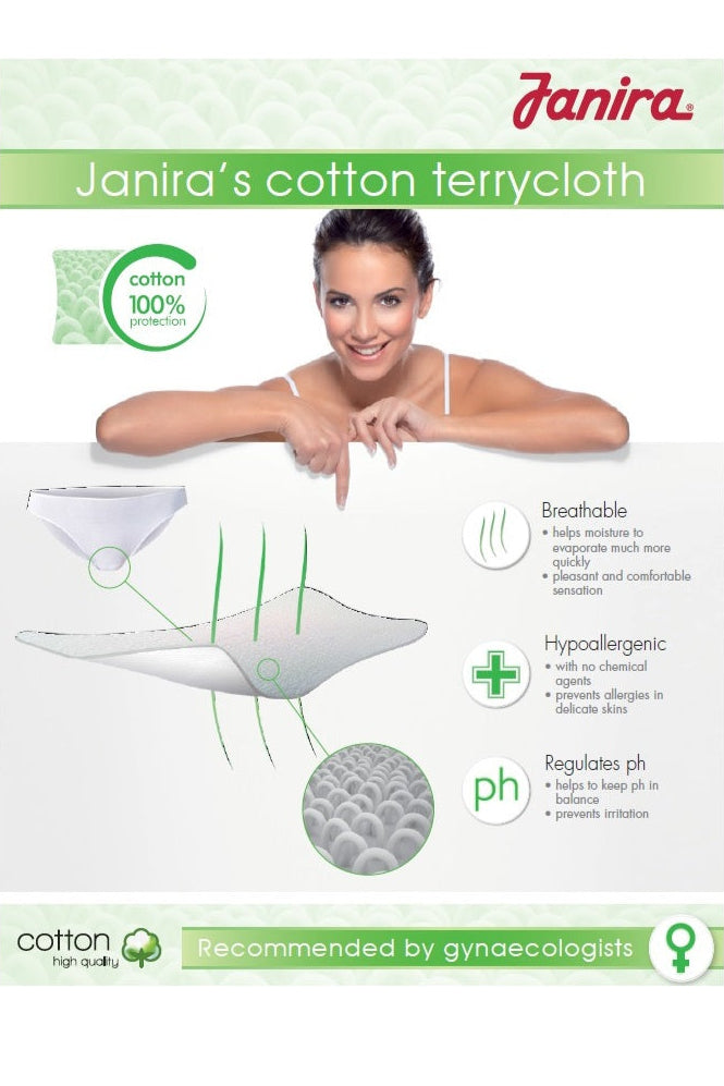Janira is a Spanish lingerie brand celebrated for its comfortable and long-lasting cotton underwear for women. Each pair of Janira panties is crafted with high-quality materials and features a terry cotton gusset—a soft, absorbent lining that enhances breathability and freshness throughout the day.